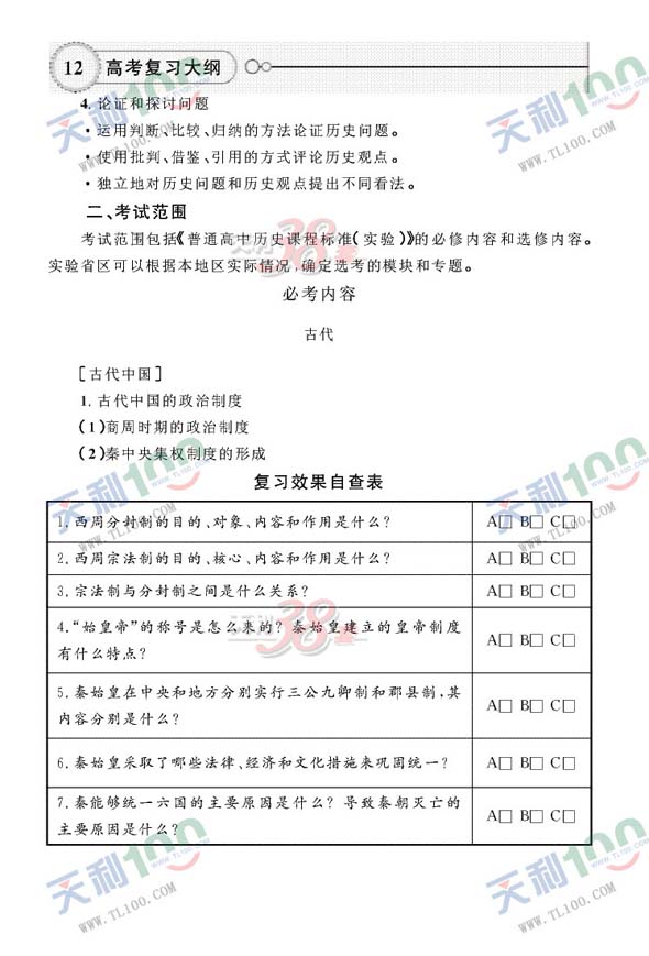 2010年高考复习大纲—历史(课标)2