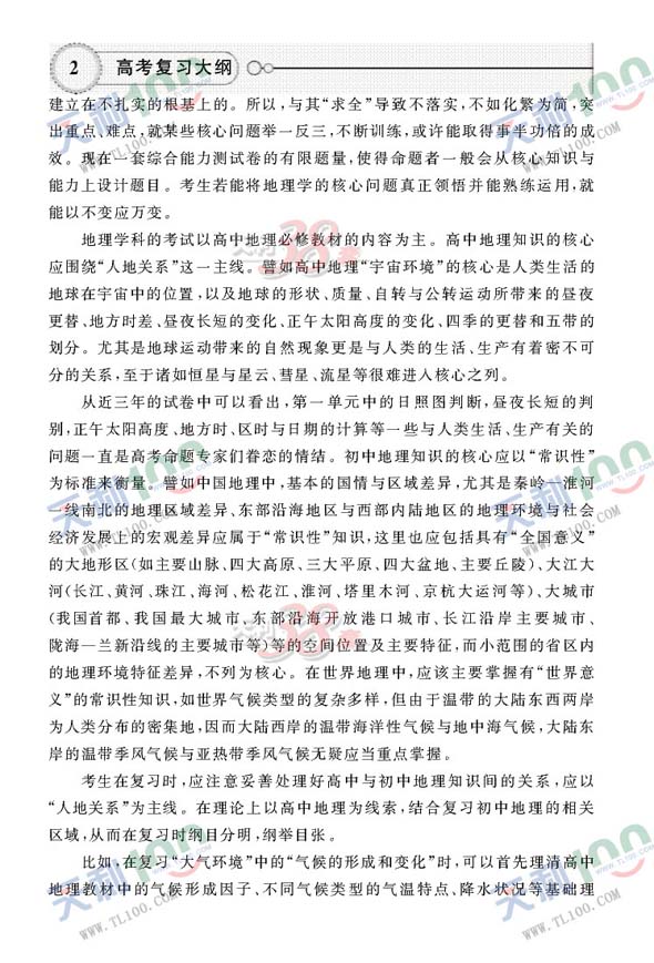 2010年高考复习大纲—地理(课标)2