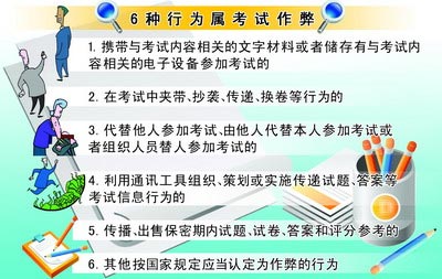 “考试法的出台,当然应该起到震慑考试作弊的作用。这是它的基本功能。”韩德云说,目前考试作弊行为已渗透到考试的每一个环节,不单单是考生作弊,还包括试题泄露、代考替考、阅卷作弊、成绩公布泄密、考生筛选作弊等。因此,考试法有必要在考试组织核心环节、程序上进行更严格的规定,重点打击国家机关工作人员的徇私舞弊行为,确保考试公平,保障考生的合法权益,从源头、制度上杜绝考试作弊,而不是过于强调对作弊的惩治、处罚。(记者 崔丽 实习生 王桂环)