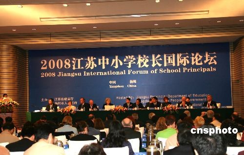 11月3日上午,由江苏省教育厅与扬州市政府共同主办的“第四届江苏省中小学校长国际论坛” 在江苏扬州召开。 本届论坛的主题是“学校领导力建设”, 旨在积极推进教育国际化战略的实施,进一步扩大教育的对外开放,拓宽基础教育领域的国际合作与交流。 中新社发 崔佳明 摄 中新网扬州11月3日电(记者 崔佳明)11月3日上午,由江苏省教育厅与扬州市政府共同主办的“第四届江苏省中小学校长国际论坛” 在江苏扬州召开。