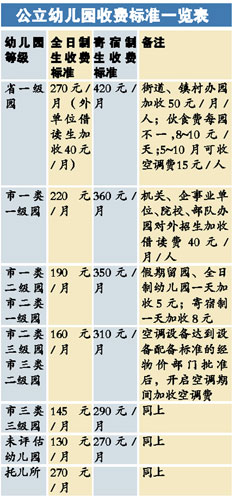 据介绍,公立幼儿园是属于全市收费最规范的层次,因为按物价局规定,省一级、市一类园、市二类园、市三类园和未评估的幼儿园、托儿所,都有明确的收费标准。公立园的每项收费、标准及收费许可证都须公示在公布栏。不过,这一层次也是目前全市幼儿园中最少的。 最普遍: