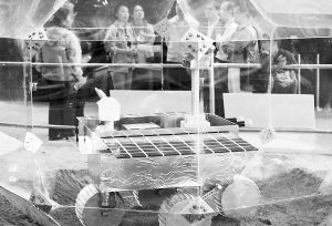 据介绍,这款四轮月球车不仅具有六轮系统的基本行驶性能,并在转向、爬坡、越障方面性能更优越。四轮菱形布置的最大特点就是,离开任意一个车轮,其余3个轮子都能形成稳定的三角形支撑结构。此外,四轮月球车还具有结构简练、操纵灵活、高轻量化、低能耗等优势。吴长青摄(来源:中国青年报)