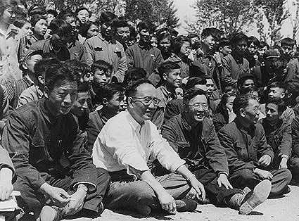 1961年5月1日,学校召开庆祝国际劳动节大会。校长郭沫若与党委书记郁文以及副校长华罗庚等席地而坐,与同学们一起观看学生文艺演出。