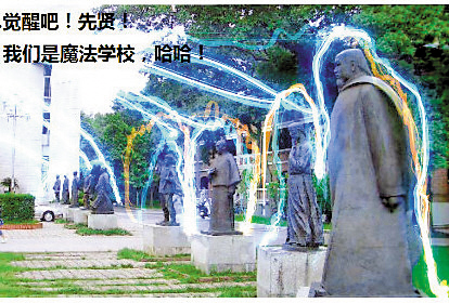 学生“搞怪”———永芳堂前的先贤铜像“变身”(网络截图)