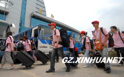 资料图片:7月26日,来自广东的大学生志愿者抵达贵阳。