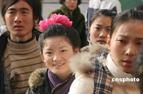 资料照片:2月18日,山东大学威海分校艺术学院招收2008年艺术专业考生的考试开考。来自全国各地报考山东大学艺术系的考生聚集威海,参加考试。