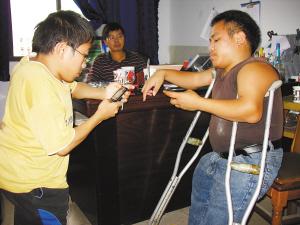 谢江海(学长):我和李浩都是残疾大学生,我们在外面可能会遭到路人一些异样的目光,但是我们应该报以平和心态。虽然身体有缺陷,但是我们要做到思想健康,心理健康。如果要在身体缺陷和心理缺陷中让我选其一,我宁肯选择身体缺陷,不希望自己做个心理有缺陷的人。 |