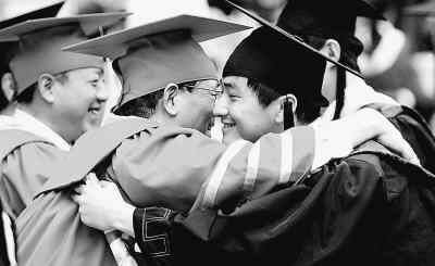 复旦大学毕业典礼上,师生深情相拥。王炬亮摄(人民图片)