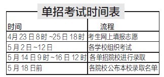 据介绍,按照相关单招规定,每名考生只能报考一所院校,已被录取的考生不再参加普通高校招生全国统一考试及录取。因此,各院校将于高考前完成单招的选拔及录取工作,被录取的学生将不再在高考中安排座次和考试。