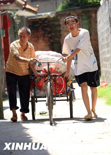 广西融水县融水镇的苗族青年桂来胜,今年以667分的高考成绩被清华大学录取。桂来胜家境贫寒,父亲患白内障,母亲驼背,全家靠低保金维持生活。他靠父亲收废品、学校免学费和好心人的资助读完了高中。目前,自强不息的桂来胜正忙着做家教、与父亲一起外出收废品,积极筹措上学费用。