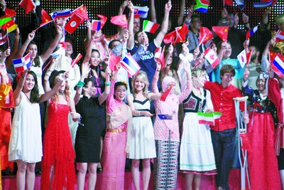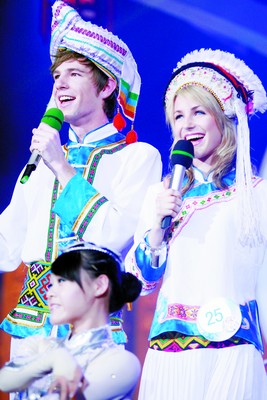 汉语桥选手麦翔明与刘思文表演中国民歌。