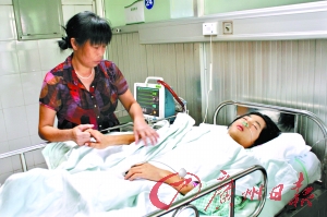 记者昨日在龙岗区人民医院见到镇涛。据主治徐医生介绍,镇涛刚被送来时已经休克,其颈部、胸部、背部等有3处刀伤,其中一刀是从其颈部砍下,以致锁骨、气管和颈部静脉断裂。“从创口来看出手很重,如果不是及时止血,肯定救不回来了。”徐医生说,目前伤者仍未脱离生命危险。