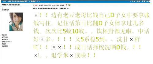 网友“大懒君”以《×!问老豆老母拿钱难过登天,烦死!》为题,在该论坛叙述了自己向父母要零花钱的“悲惨”经历,原帖全部用粤语写成,寥寥数语,竟然爆出多个粗口。
