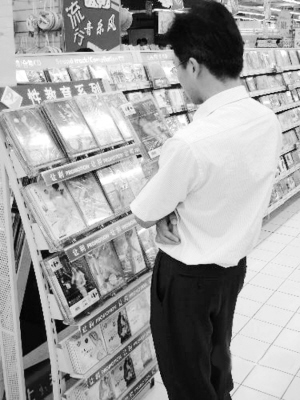 苏州市区一家大型敞开式超市内把许多印有全裸人体艺术照片的《性教育资料》放在货架上,供人们选购。王建康 摄
