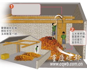 “小娃儿总喜欢干一趟耍一阵。”根据现场,雷雷爸爸认为,雷雷搬玉米棒子累了,就想学电视里玩“空中飞人”表演,用晾衣绳系在屋梁上荡秋千。站在玉米推上,系好了绳子的一头后,还没来得及系另一头,结果玉米堆坍塌,雷雷身子随着倾倒下来,不幸被事先系好的活套套住了脖子,慌乱中越挣扎越紧。最后,玉米堆蹬散了,鞋也蹬掉了,但双脚还是未能沾地,被晾衣绳勒没了气。