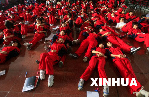 5月28日,同学们集体进行冥想训练,摆脱心理恐惧。从5月28日起,一门旨在减轻考生压力的高考压力管理课程在北京北方交通大学附中开讲,150名高三毕业生参加了减压培训。北京市青少年法律与心理咨询服务中心的心理老师通过各种方法帮助考生缓解紧张情绪、调适心理,以更好的状态迎接高考。 新华社 发