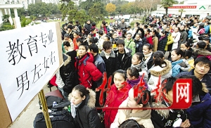 人最多的要算影视学院了,100多个的招生名额竟吸引来7000多人报名,而去年才3000多人。这种翻倍涨的赶考大军也给考务工作的安排带来一系列麻烦,院方将省内、省外的分开考,安排在不同的时间段,以节省考生的等待时间。一位抱着大提琴等候的河南女考生嗓子哑得快说不出话来,“可能是到南京来水土不服,天又冷。”报考影视学院的很多考生都是精心打扮的,脸上画着淡妆,穿得也相当“冻人”,男生外套里只有一件衬衫,很多女生还穿了裙子,在寒风中瑟瑟发抖。