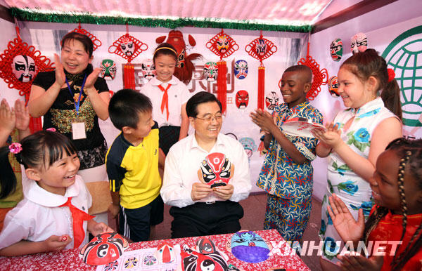 胡锦涛总书记“六一”前夕在北京看望中外小朋友们