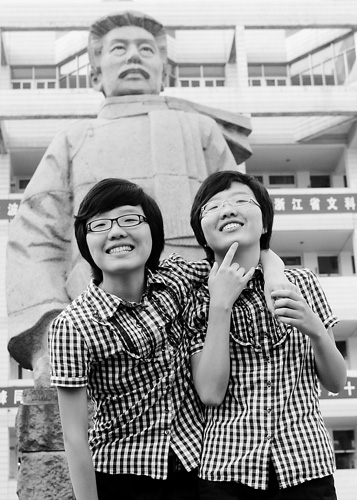 读到高三,之前参加过大大小小许多考试,有几次相同?“从来没有相同过,就高考这一次,绝对是意外。”虽然以往的考试各有胜负,但光听两人默契的回答,就可以预料平时的默契程度。