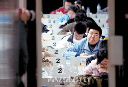 继去年首次将自主招生考试设在京城外,北京大学今年再次在渝举行自主招生考试,98名来自我市10多所中学的高三尖子生在设在求精中学的考场里接受一次提前选拔(如图),力争进入中国最好的大学之一。