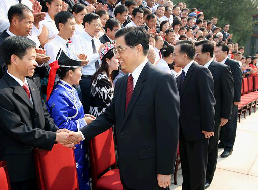 8月31日,党和国家领导人胡锦涛、温家宝、曾庆红、李长春在北京中南海怀仁堂亲切会见全国优秀教师代表。
