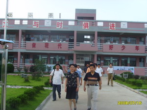 7月16日下午,省教育厅金燕副厅长、基教处缪富国处长、郑德新副处长在县教育局罗伟局长陪同下,冒着酷暑,深入到紫蓬镇中心学校、农兴中学、小庙学区中心学校、明德希望小学、北分路小学、小庙中学等7所学校调研。在紫蓬镇中心学校,金厅长一行听取县教育局罗局长简要情况汇报,仔细询问了紫蓬镇中心学校的学区管理、经费管理、农远设备使用等情况,并实地察看紫蓬镇中心小学布点。在农兴中学,金厅长听取了校长程玉俊办学情况简要汇报,并视察了校园环境。在小庙学区中心学校,听取了校长高金福以学区管理,均衡配置师资,实行走教制度,开足开齐课程,推进新课改的汇报。金厅长充分肯定该校的做法,要以县教育局总结提炼,在全县范围内推开,促进县域教育均衡发展。在小庙中学,金厅长听取姚家驹校长关于市级示范学校创建工作情况的汇报,并深入学生食堂、学生公寓察看,要求学校做好安全防范工作,切实保障广大师生安全。在明德希望小学,金厅长兴致勃勃地观看了该校2007年在市古诗文诵读录像,并肯定了该校在学生中弘扬中华传统文化,诵读古诗文的成功做法,并希望以学区为单位,全面推进,创造特色,形成一校一品。