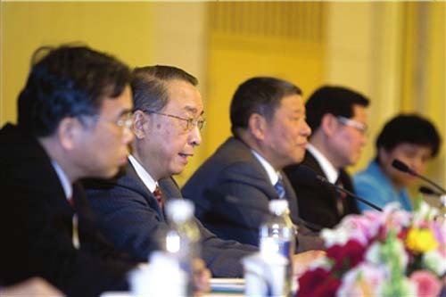 教育部副部长章新胜(左二)回答记者提问 记者周民摄