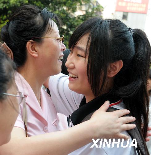 6月7日,广州市109中学的考生李紫薇(右)与前来送考的老师热情相拥。当日,2009年全国普通高校招生全国统一考试拉开帷幕,在广州市广铁一中考点外,送考老师与考生之间展现出浓浓的师生情谊。新华社记者 刘大伟 摄