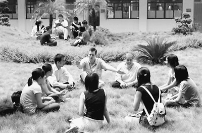外籍教师在美国英卡奈特大学广州教学点授课。