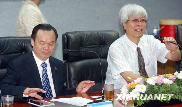 7月14日,北大校长周其凤(左)与台湾大学副校长陈泰然座谈。