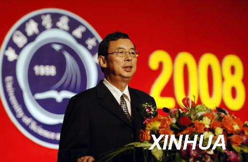 资料图片:2008年9月20日,时任中科大校长的朱清时院士在纪念建校50周年庆祝大会上致辞。当日,位于安徽合肥的中国科学技术大学(简称“中科大”)举行纪念建校50周年庆典。到2008年,中科大已培养出近5万名毕业生。他们中有42人当选中国科学院、中国工程院院士。新华社记者 李健 摄